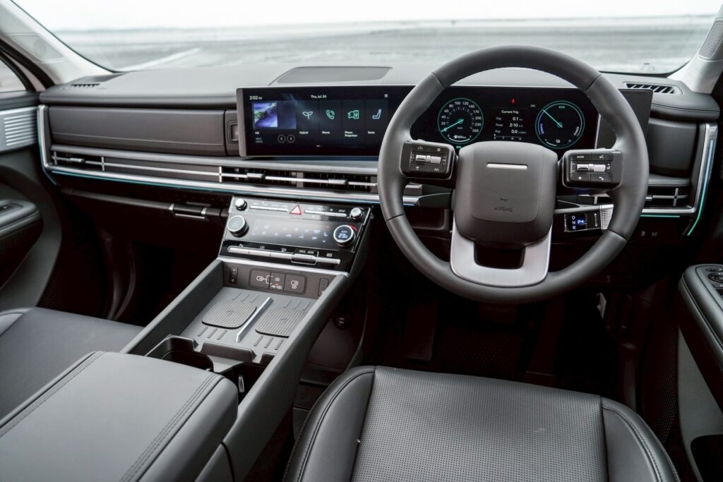 มากกว่าสมรรถนะ Hyundai all-new SANTA FE Hybrid ยังโดดเด่นด้วยดีไซน์ภายนอกที่สวยงามและแตกต่าง สะท้อนความพรีเมียมตั้งแต่แรกเห็น พร้อมห้องโดยสารที่ออกแบบเพื่อความอเนกประสงค์อย่างแท้จริง ด้วยเบาะแถวสองแบบ Captain Seat ปรับไฟฟ้า พื้นที่เก็บสัมภาระท้ายรถ (Trunk Space) กว้างขวาง รองรับทั้งทริปครอบครัวและการใช้งานในชีวิตประจำวัน รายละเอียดเล็ก ๆ ถูกคิดมาเพื่อความสะดวก เช่น ช่องเก็บขวดน้ำมากถึง 16 จุด, Wireless Charger และช่องชาร์จ USB Type-C สำหรับทุกที่นั่ง เสริมด้วยหน้าจอแสดงผลและระบบความบันเทิงขนาด 12.3 นิ้ว และระบบความปลอดภัย Hyundai SmartSense ที่ดูแลรอบคัน ทำให้ Hyundai all-new SANTA FE Hybrid ไม่ได้เป็นเพียง SUV สำหรับการเดินทาง แต่คือพื้นที่ชีวิตที่ครบครันสำหรับทุกคนในครอบครัว