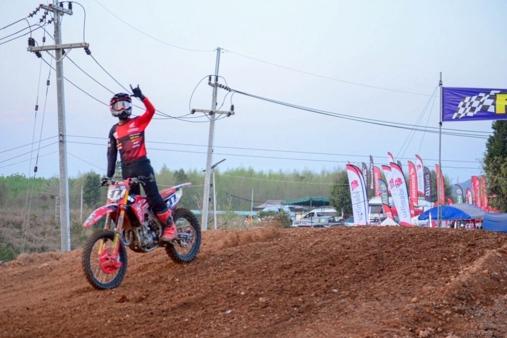 ขณะที่การแข่งขันในรุ่น MX-2 Pro “คิ้วท์” พันธกานต์ บุญชาลี หมายเลข 17 บิดยอดรถแข่ง Honda CRF250R ทีม Honda Asia Bowin Idemitsu S Motor ระเบิดผลงานคว้าอันดับที่ 2 มาครอง โดยมี “ไตรตั้น” เตโชดม มีแสง หมายเลข 193 จากทีม Honda Racing Thailand Idemitsu Wannalak Motorsport ตามมาในอันดับที่ 3 บนโพเดียม