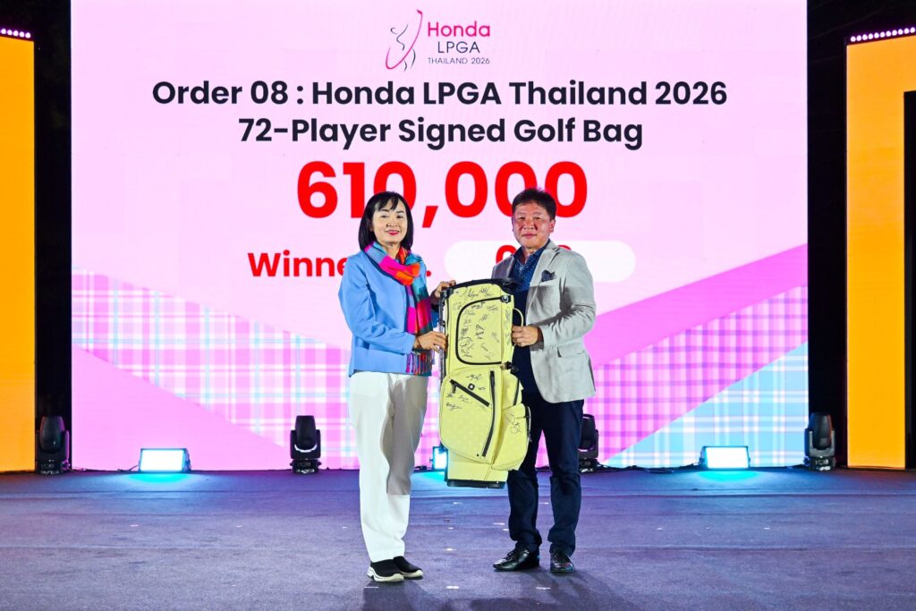 หนึ่งในไฮไลต์ของค่ำคืนแห่งการให้ คือ ถุงกอล์ฟฮอนด้าสุดเอ็กซ์คลูซีฟ พร้อมลายเซ็นจากนักกอล์ฟทั้ง 72 คนที่เข้าร่วมการแข่งขันกอล์ฟรายการนี้ ซึ่งเป็นสัญลักษณ์แห่งการรวมตัวของสุดยอดนักกอล์ฟหญิงระดับโลกในปีนี้ ซึ่งถูกประมูลไปในราคา 610,000 บาท โดย คุณวัชรินทร์ ล่องดุริยางค์ จากบริษัท ฮอนด้า ปิยะ จำกัด ขณะที่อีกหนึ่งไอเทมที่ได้รับความสนใจอย่างมาก ได้แก่ เสื้อโปโลพร้อมลายเซ็น ของ จีโน่–อาฒยา ฐิติกุล นักกอล์ฟหญิงมือ 1 ของโลก และนักกอล์ฟสตรียอดเยี่ยมแห่งปี 2025 ของแอลพีจีเอทัวร์ ถูกประมูลไปในราคา 500,000 บาท โดย คุณบุญยศ บุญเกียรติเจริญ จากบริษัท ยศเจริญ ฮอนด้า กิ่งแก้ว จำกัด
