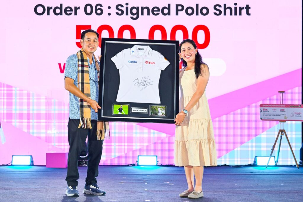 ชุดแข่งขันพร้อมลายเซ็นของ นาสะ ฮาตาโอกะ จากญี่ปุ่นเจ้าของแชมป์แอลพีจีเอ 7 รายการ ซึ่งผู้ชนะการประมูล ได้แก่ คุณอาคิระ โคอิมาอิ รองประธานกรรมการบริหาร บริษัท เอเชี่ยนฮอนด้ามอเตอร์ จำกัด ถูกประมูลในราคา 150,000 บาท