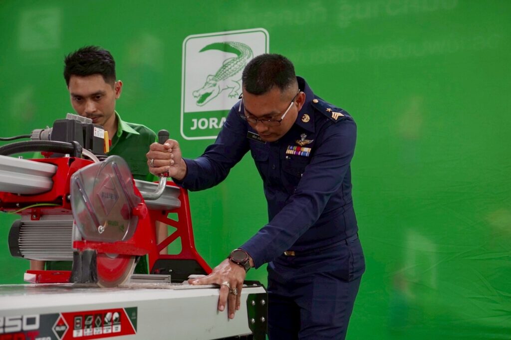 สำหรับกิจกรรมแชร์องค์ความรู้ในครั้งนี้นำทีมโดยผู้เชี่ยวชาญจาก JORAKAY Academy ที่มาถ่ายทอดเทคนิคเชิงลึกด้านการก่อสร้าง การปูกระเบื้อง และการซ่อมบำรุง พร้อมนำเสนอนวัตกรรมก่อสร้างของจระเข้และสาธิตการใช้งาน เพื่อเสริมความเข้าใจในการประยุกต์ใช้และเลือกใช้วัสดุได้เหมาะสมกับหน้างาน โดยมุ่งเน้นกลุ่มสินค้าที่สำคัญต่องานก่อสร้าง ได้แก่ นวัตกรรมปูกระเบื้อง นวัตกรรมงานพื้น งานซ่อมแซม ระบบกันซึม และสีจระเข้ (SEE JORAKAY) รวมทั้งอุปกรณ์สำหรับตกแต่งและปูกระเบื้อง ก่อนปิดท้ายด้วยการนำคณะเยี่ยมชมสำนักงานใหญ่ เพื่อให้กรมฯ ได้นำความรู้และวิธีการไปปรับใช้ให้เป็นประโยชน์ต่องานโครงสร้างพื้นฐานของกองทัพอากาศ พร้อมกันนี้จระเข้ยังสนับสนุนภารกิจของกรมช่างโยธาทหารอากาศ ในกรณีลงพื้นที่ช่วยเหลือประชาชน ทั้งการซ่อมแซมที่อยู่อาศัย และการฟื้นฟูบ้านเรือนที่เสียหายจากภัยพิบัติ