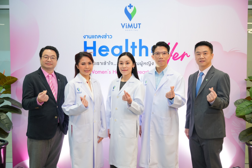 รพ. วิมุต ผสานทีมแพทย์เฉพาะทาง เทคโนโลยีทันสมัย และความเข้าใจเชิงลึกในความซับซ้อนของสุขภาพผู้หญิง เพื่อเปลี่ยนจาก “รอรักษาเมื่อป่วย” เป็น “ดูแลเชิงป้องกันและต่อเนื่อง” แคมเปญ Health for Her เป็นการประกาศจุดยืนว่า สุขภาพผู้หญิงคือรากฐานของศักยภาพองค์กร เศรษฐกิจ และสังคม และเมื่อปัญหาสำคัญคือโรคจำนวนมากถูกพบเมื่อสาย เพราะอาการเริ่มต้นมักถูกมองข้าม รพ. วิมุต จึงเน้นการสร้างความตระหนักรู้ว่า ยิ่งรู้เร็ว รักษาไว โอกาสฟื้นตัวยิ่งสูง ย้ำว่าโรคที่พบมากมีความเกี่ยวข้องกับระบบฮอร์โมน ระบบสืบพันธุ์ และสุขภาพเต้านม ซึ่งอาจไม่แสดงอาการชัดในระยะแรก การตรวจสุขภาพและคัดกรองสม่ำเสมอจึงเป็นหัวใจสำคัญ
