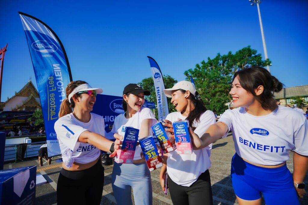 เบนิฟิตต์ ไฮโปรตีน แลคโตสฟรี นมยูเอชทีโปรตีนสูง ประโยชน์เต็มๆ ปราศจากน้ำตาลแลคโตส ไม่เติมน้ำตาลทราย เดินหน้าชูกลยุทธ์เจาะไลฟ์สไตล์คนเมืองอย่างต่อเนื่องด้วยการสร้างประสบการณ์ร่วมกับผู้บริโภคผ่านกิจกรรมที่ตอบโจทย์ทุกสไตล์การออกกำลังกาย วิ่ง ปั่น และเทรล ตลอดทั้งปี เพื่อยกระดับภาพลักษณ์จากผลิตภัณฑ์โปรตีนสู่แบรนด์ที่เข้าไปอยู่ในทุกจังหวะชีวิตของคนรักสุขภาพอย่างแท้จริง