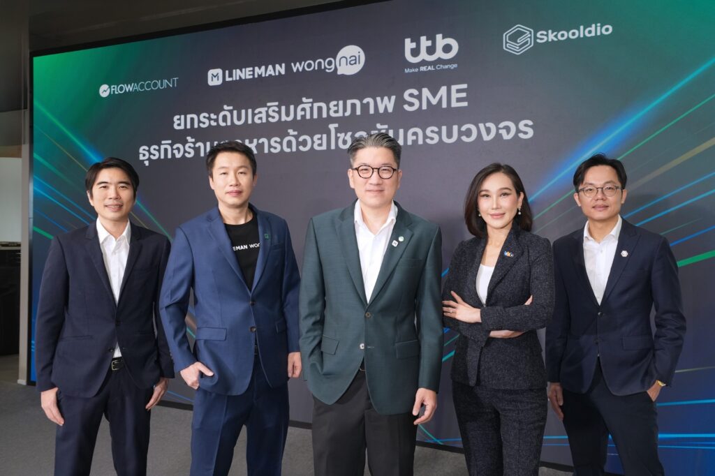 ทีทีบี ผนึกกำลังกับ LINE MAN Wongnai ร่วมกับ FlowAccount และ Skooldio พัฒนาโซลูชันดิจิทัลครบวงจรสำหรับธุรกิจร้านอาหารไทย เชื่อมโยงทุกระบบตั้งแต่การขายหน้าร้าน หลังบ้าน บัญชี การเงิน ไปจนถึงการเสริมทักษะดิจิทัล ช่วยให้เจ้าของร้านมองเห็นภาพรวมธุรกิจ คุมต้นทุนและบริหารการเงินได้อย่างแม่นยำ พร้อมผลักดันการเติบโตอย่างยั่งยืน