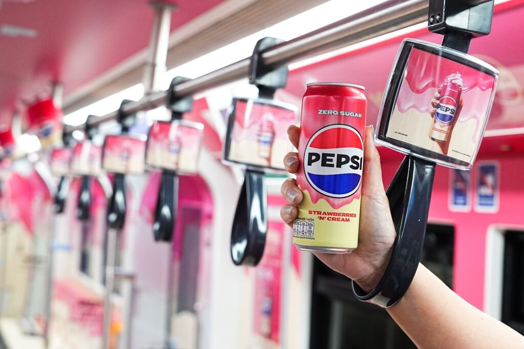 นอกจากนี้ ซันโทรี่ เป๊ปซี่โค ประเทศไทย ยังเดินหน้าชูกลยุทธ์ Experience-Led Marketing สร้างประสบการณ์จริงเชื่อมต่อแบรนด์กับผู้บริโภค โดยเฉพาะกลุ่ม Gen Z ผ่านการ Takeover รถไฟฟ้า BTS พลิกช่วงเวลาการเดินทางให้กลายเป็นโมเมนต์แห่งการทรีตตัวเอง พร้อมสร้างปรากฏการณ์ครั้งแรกในรอบ 27 ปีของเป๊ปซี่ ประเทศไทย กับการ Wrap เก้าอี้บนรถไฟฟ้า BTS ในโทนสีหวานละมุน ให้ทุกการนั่งคือช่วงเวลาที่ทุกคน deserve a treat เติมความหวานนุ่มละมุนซ่าและรอยยิ้มให้ผู้โดยสารหลังวันอันยาวนาน พร้อมยกระดับประสบการณ์ด้วย เทคโนโลยีการ Sync ขบวนรถไฟฟ้ากับจอ OOH ของ Plan B ที่ทำให้จอ Parc Paragon แสดงโฆษณา Pepsi Treats ทุกครั้งที่ขบวนรถไฟฟ้า Pepsi Treats วิ่งผ่าน เพิ่มสีสันและความตื่นเต้นให้กับการเดินทางของผู้ใช้งาน ก่อนต่อยอดประสบการณ์สู่โลกออฟไลน์ด้วยการเนรมิตลานลิฟต์แก้ว ชั้น 1 ศูนย์การค้าเซ็นทรัลเวิลด์ ให้กลายเป็นพื้นที่กิจกรรมสุดซ่าแต่ซ่อนความหวานละมุนใจ ระหว่างวันที่ 27 กุมภาพันธ์ – 1 มีนาคม 2569 ภายในงานอัดแน่นด้วยกิจกรรมให้ร่วมสนุก ทั้งมินิเกมลุ้นรับของรางวัล การเพลิดเพลินกับ Pepsi® Treats DIY Bar ที่เสิร์ฟเมนูเครื่องดื่มเอ็กซ์คลูซีฟจากเป๊ปซี่ ทรีทส์ จับคู่กับทาร์ตไข่สูตรพิเศษจาก YOLK รวมถึงมุมถ่ายรูปสุดคูลจาก Sculpture ที่ช่วยสร้างสีสันและกระตุ้นการแชร์ประสบการณ์บนโซเชียลมีเดีย
