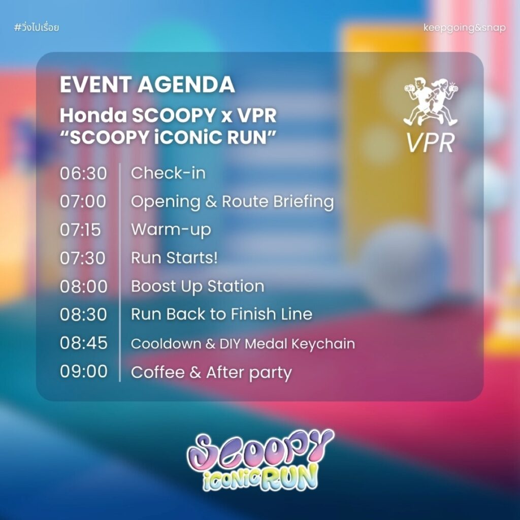 Scoopy iCONiC Run ถือเป็นอีกหนึ่งกิจกรรมไลฟ์สไตล์ที่เชื่อมสีสัน ความเป็นตัวเอง และพลังของแก๊งเจนใหม่สุดไอคอนิกให้มาเจอกันในเช้าวันเดียว ออกมาเติมพลังกับซิตี้รัน 5 กิโลเมตรใจกลางเมือง สนุกกับการมิกซ์สปอร์ตลุคในสไตล์ตัวเอง พร้อมลุ้นโมเมนต์เอ็กซ์คลูซีฟกับ “ตุ้ย–เลโก้ จาก LYKN” ไปพร้อมกัน! เตรียมพบกันวันที่ 21 มีนาคม 2569 ณ สามย่านมิตรทาวน์