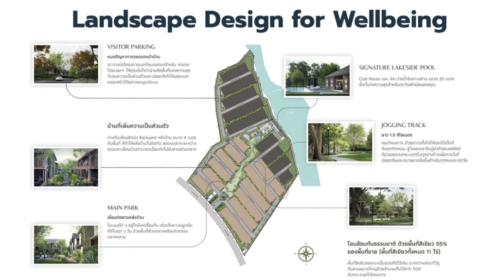- The Essence of Wellbeing สุขภาวะจากธรรมชาติที่โอบล้อมรอบบ้าน พร้อมพื้นที่ส่วนกลางที่ช่วยให้การออกกำลังกาย เกิดขึ้นได้ที่บ้านแบบไม่ต้องเดินทางไปยิม