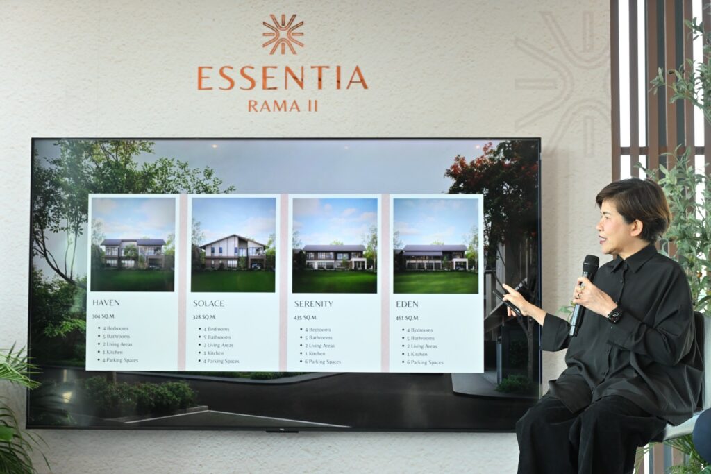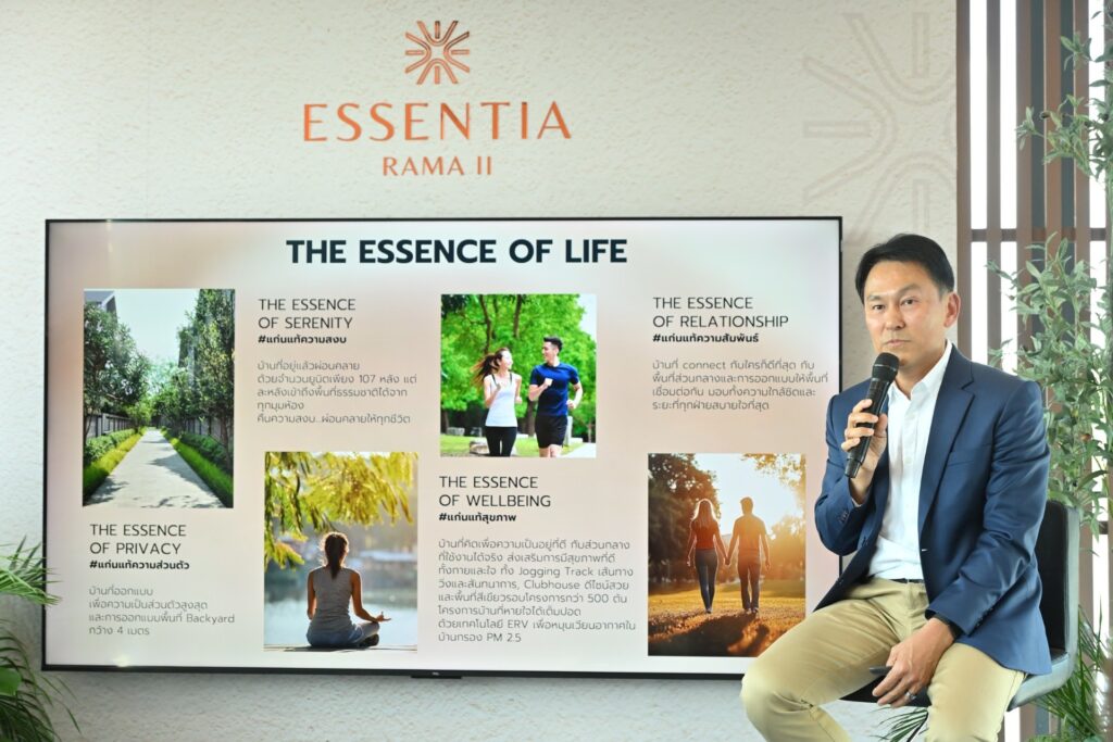 นายสุเทพ ปัญญาสาคร กล่าวว่า “เราสะสมอินไซต์ของลูกค้า เข้าใจ Pain Point ของโครงการบ้านจัดสรร แล้วนำมาพัฒนาโครงการ ที่ตอบโจทย์ดีมานด์คนอยู่อาศัยจริง เราจึงพัฒนาโครงการ ESSENTIA RAMA 2 ด้วยความเข้าใจว่าบ้านที่ดี ต้องยกระดับคุณภาพชีวิตสำหรับ ทุกคนในบ้าน ซึ่งจากฟิตแบ็กของลูกค้าที่ผ่านมาจะประทับใจแบบบ้านที่รู้สึกว่าแตกต่าง เป็นเอกลักษณ์ รู้สึกถึงรายละเอียดเล็กๆ น้อยๆ ที่เราคิดมาอย่างตั้งใจ นั่นคือ บ้านทุกหลังมีสวนหลังบ้าน (Backyard) พร้อมทางเดินพักผ่อน Whisper Walk กว้าง 4 เมตรด้านหลังบ้าน ช่วยเว้นระยะไม่ให้หลังบ้านติดกัน มอบความสงบและความเป็นส่วนตัว พร้อมเชื่อมสู่พื้นที่สีเขียว 11 ไร่”