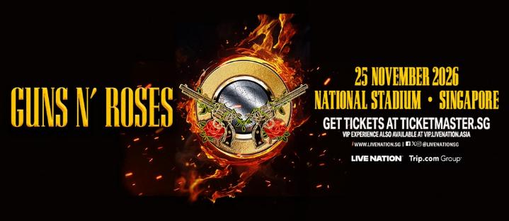 เตรียมพบกับค่ำคืนแห่งเพลงร็อกระดับตำนานกับคอนเสิร์ตของ Guns N’ Roses ในเวิลด์ทัวร์ 2026 ที่จะมาระเบิดความมันให้แฟนเพลงที่ National Stadium Singapore ประเทศสิงคโปร์ สัมผัสพลังการแสดงสดจากหนึ่งในวงฮาร์ดร็อกระดับโลก นำโดย Axl Rose, Slash และ Duff McKagan พร้อมโปรดักชันเวที แสง สี เสียงสุดยิ่งใหญ่ และลิสต์เพลงฮิตที่แฟน ๆ ร้องตามได้อย่าง Sweet Child O’ Mine, November Rain และ Welcome to the Jungle มาร่วมสนุกกับค่ำคืนแห่งดนตรีร็อกที่เต็มไปด้วยพลัง ความทรงจำ และบรรยากาศสุดมันที่แฟนเพลงไม่ควรพลาด สามารถดูข้อมูลเพิ่มเติมเกี่ยวกับบัตรเข้าชมได้ที่นี่