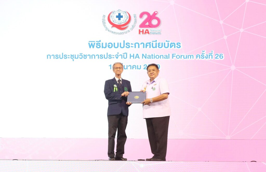 โรงพยาบาลเจ้าพระยาเข้ารับประกาศนียบัตรการรับรองคุณภาพสถานพยาบาล (HA) ในงานประชุมวิชาการ HA National Forum ครั้งที่ 26 โดยมี นพ.สมเกียรติ คูอมรพัฒนะ ผู้อำนวยการโรงพยาบาล เป็นผู้แทนเข้ารับมอบประกาศนียบัตรจาก นายพัฒนา พร้อมพัฒน์ รัฐมนตรีว่าการกระทรวงสาธารณสุข การได้รับการรับรองมาตรฐาน HA ครั้งนี้ เป็นการต่ออายุการรับรองคุณภาพโรงพยาบาล สะท้อนถึงความมุ่งมั่นในการพัฒนาคุณภาพบริการทางการแพทย์อย่างต่อเนื่อง เพื่อให้ประชาชนได้รับการดูแลที่มีมาตรฐาน ปลอดภัย และมีคุณภาพ พร้อมตอกย้ำศักยภาพของโรงพยาบาลที่ได้รับการรับรองคุณภาพทั้งในระดับประเทศและระดับสากล ได้แก่ JCI, CCPC Senile Cataract Surgery และ HA ณ ศูนย์การประชุมอิมแพ็ค ฟอรั่ม เมืองทองธานี จ.นนทบุรี