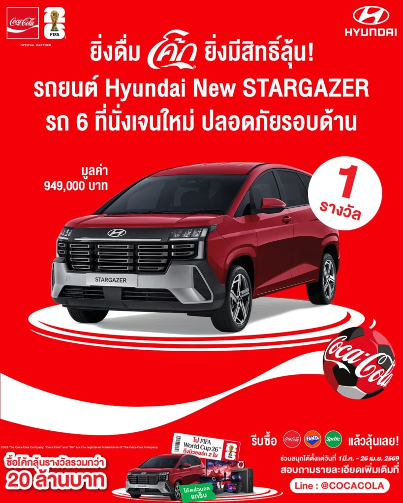 ต่อเนื่องจากประสบการณ์ดังกล่าว ฮุนไดยังนำเสนอ The new STARGAZER โฉมใหม่ล่าสุด ที่เตรียมประกาศราคาอย่างเป็นทางการภายในงาน พร้อมจัดแสดง The new STARGAZER สีแดง รุ่น Limited Edition คันเดียวในประเทศไทย ซึ่งได้รับการคัสตอมพิเศษเพื่อเป็นของรางวัลในแคมเปญความร่วมมือกับโคคา-โคล่า “โค้กเปิดฟีลซ่าส์ พาลัดฟ้าเชียร์ FIFA World Cup 2026™” เพื่อร่วมสร้างสีสันและปลุกพลังแฟนบอลไทยก่อนมหกรรมฟุตบอลระดับโลกจะเริ่มต้น