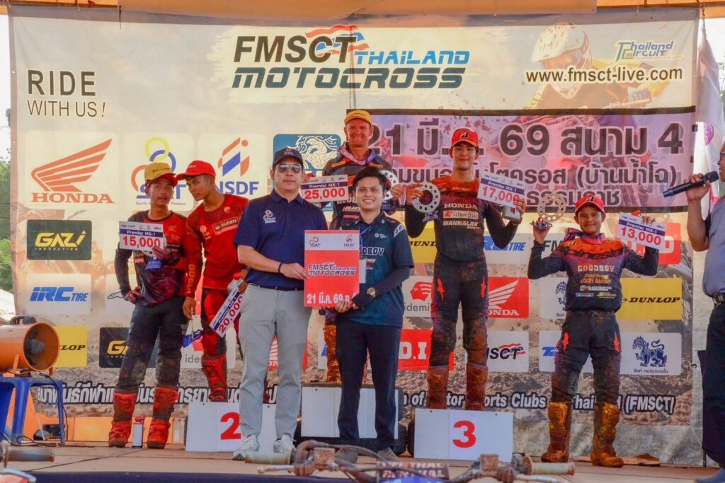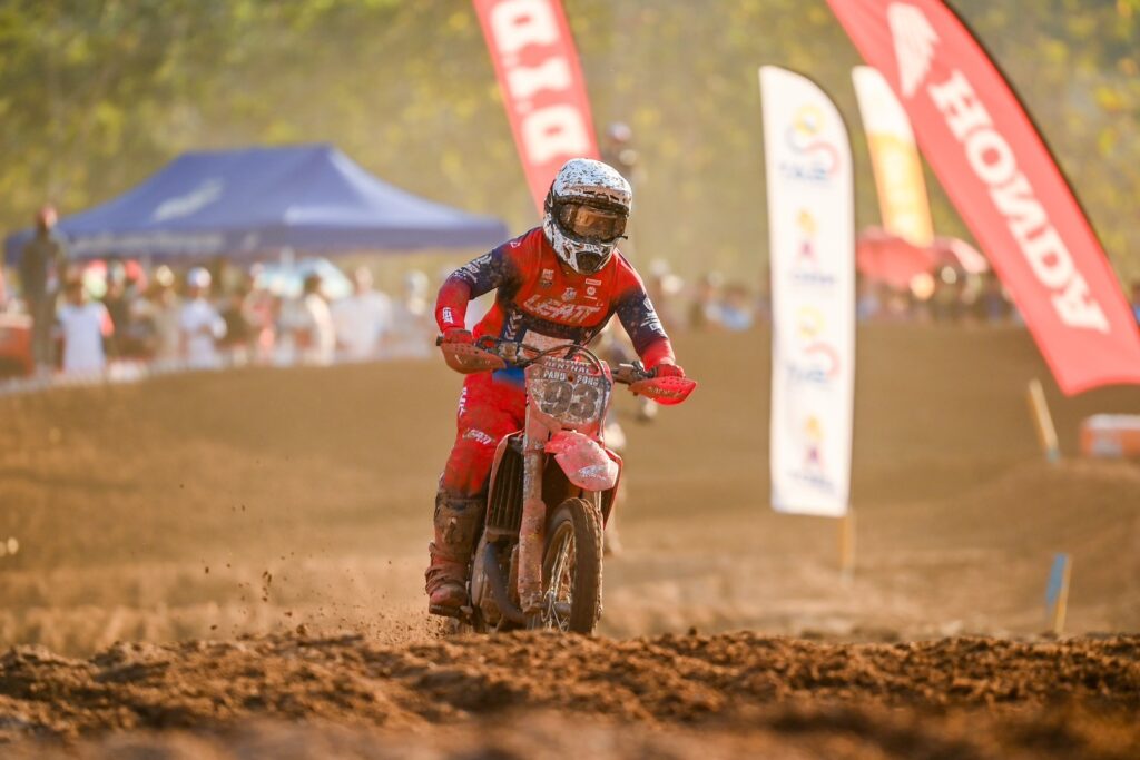 รุ่น MX-2 Pro (250cc.) “ไตรตั้น-เตโชดม” บิดยอดรถแข่ง Honda CRF250R จากทีม Honda Racing Thailand Idemitsu Wannalak ทะยานขึ้นโพเดียมมาเป็นอันดับที่ 3 ขณะที่ “คิ้วท์-พันธกานต์”