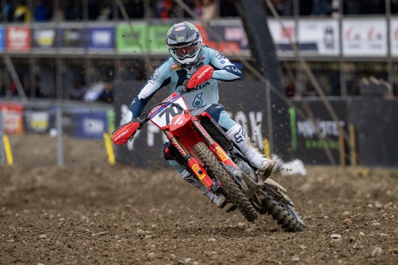 MXGP of Switzerland กับคาแร็กเตอร์สนามที่แตกต่างจากสองสนามแรกอย่างสิ้นเชิง พื้นสนามที่แข่งสลับด้วยร่องโคลนที่เหนียวและลึกในช่วงโค้งยากต่อการแซง ท้าทายศักยภาพนักแข่งและสมรรถนะของรถแข่งอย่างมาก การแข่งขันเรซที่ 1 “ทอม วิอัลเล่” กับรถแข่ง Honda CRF450RW หมายเลข 16 เริ่มต้นการแข่งขันจากอันดับที่ 18 เปิดเกมส์ได้อย่างร้อนแรง โชว์ความเหนือชั้นของฮอนด้าทีม แซงคู่แข่งขึ้นนำพร้อมกับบวกความเร็วหนีห่างออกไปทันที และเป็นการนำก่อนคว้าชนะแบบม้วนเดียวจบ ปลดล็อคคว้าชัยชนะครั้งแรกให้กับตัวเองในสังกัดฮอนด้า โดยมี “รูเบน เฟอร์นานเดซ” หมายเลข 70 ที่ขับในเรซนี้ได้อย่างยอดเยี่ยมเช่นกัน ตามขึ้นโพเดียมในอันดับที่ 3 ขณะที่ “เจฟฟรีย์ เฮอร์ลิงส์” หมายเลข 84 ลุ้นขึ้นนำในกลุ่มหัวแถว โชคร้ายอุบัติเหตุในโค้งช่วงต้นการแข่งขันทำให้โซ่หลุด พลาดโอกาสลุ้นชัยชนะไปอย่างน่าเสียดาย
