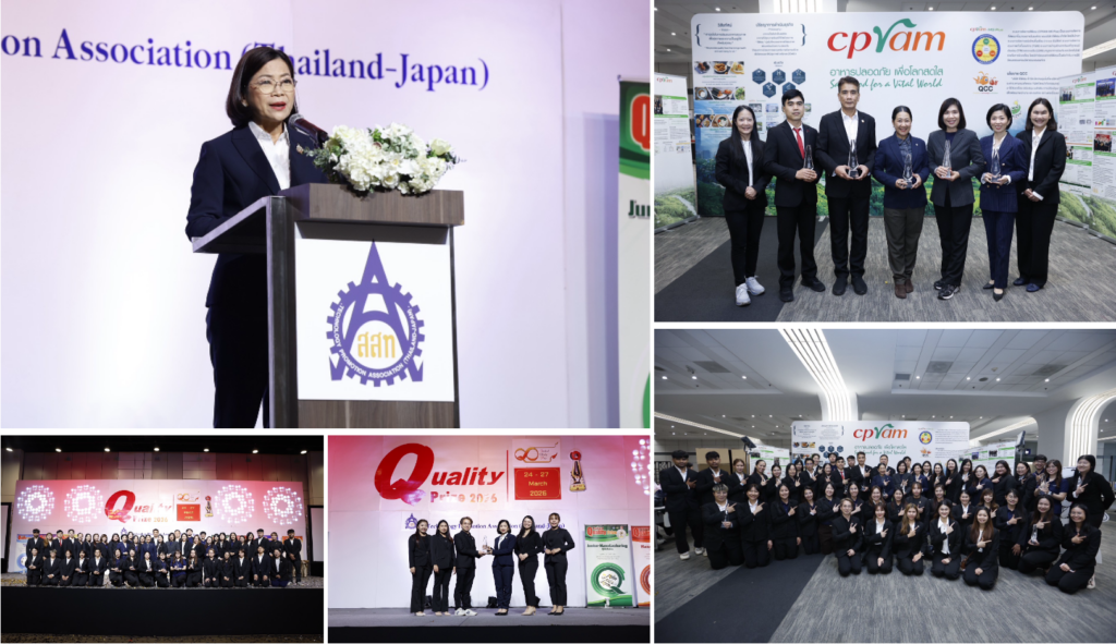 กรุงเทพฯ 1 เมษายน 2569 – ซีพีแรม (CPRAM) ผู้นำอุตสาหกรรมอาหารพร้อมรับประทาน ประกาศความสำเร็จด้านการบริหารจัดการองค์กรและมาตรฐานของกระบวนการผลิตอีกครั้ง ด้วยการคว้า 6 รางวัล Golden Award และ 3 รางวัล Silver Award ในงาน “Thailand Quality Prize 2026” จัดโดยสมาคมส่งเสริมเทคโนโลยีไทย-ญี่ปุ่น (ส.ส.ท.) ณ ศูนย์นิทรรศการและการประชุมไบเทค บางนา กรุงเทพฯ