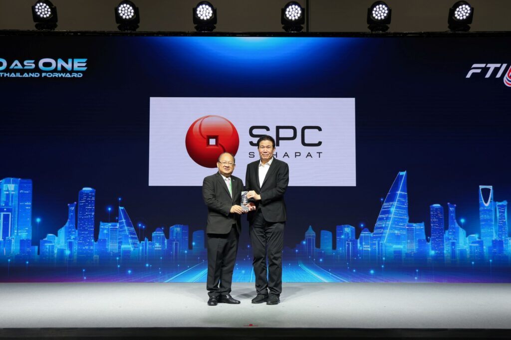 นายเวทิต โชควัฒนา (ขวา) กรรมการผู้อำนวยการ บริษัท สหพัฒนพิบูล จำกัด (มหาชน) หรือ SPC ผู้จัดจำหน่ายสินค้าอุปโภคและบริโภคชั้นนำของไทย เป็นผู้แทนบริษัทฯ เข้ารับโล่ประกาศเกียรติคุณ จากนายเกรียงไกร เธียรนุกุล (ซ้าย) ประธานสภาอุตสาหกรรมแห่งประเทศไทย (FTI) ในโอกาสที่บริษัทฯ ให้การสนับสนุนการดำเนินกิจกรรมต่าง ๆ ของสภาอุตสาหกรรมแห่งประเทศไทยอย่างต่อเนื่อง ร่วมกับภาคเอกชน