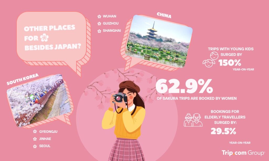 แม้ญี่ปุ่นยังเป็นจุดหมายหลักของการท่องเที่ยวเพื่อชมซากุระ แต่เกาหลีใต้และจีนกำลังได้รับความสนใจเพิ่มขึ้นอย่างต่อเนื่อง โดยติดอันดับ 5 จุดหมายปลายทางที่มีการค้นหาคีย์เวิร์ดเกี่ยวกับซากุระมากที่สุดในโลก