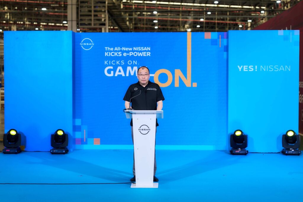 โชเฮย์ ยามาซากิ ประธานคณะกรรมการบริหารประจำภูมิภาค ญี่ปุ่น/อาเซียน และ AFL (Chairperson of the Management Committee for Japan/ASEAN &AFL) บริษัท นิสสัน มอเตอร์ จำกัด กล่าวว่า “นิสสันดำเนินธุรกิจในประเทศไทยมายาวนานกว่า 73 ปี และยังคงมุ่งมั่นพัฒนาผลิตภัณฑ์และยกระดับศักยภาพการผลิต เพื่อตอบสนองความต้องการของลูกค้าอย่างต่อเนื่อง วันนี้นับเป็นอีกหนึ่งเป้าหมายสำคัญกับการเริ่มสายการผลิต ‘นิสสัน คิกส์ อี-พาวเวอร์ ใหม่’ ซึ่งสะท้อนถึงศักยภาพ และความเชี่ยวชาญในการผลิตยานยนต์ของคนไทย พร้อมส่งมอบรถยนต์คุณภาพมาตรฐานญี่ปุ่นสู่ผู้ขับขี่อย่างมีประสิทธิภาพ”