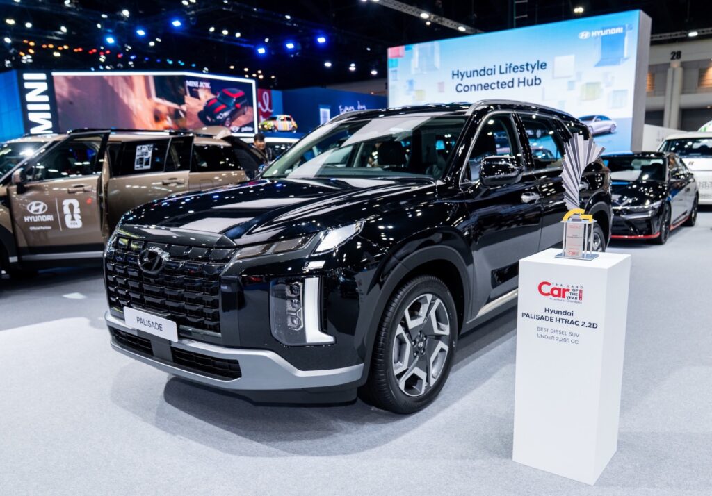 Hyundai PALISADE Diesel D-SUV แฟลกชิป 7 ที่นั่ง ที่มาพร้อมความหรูหราเหนือระดับ ขับเคลื่อนด้วยเครื่องยนต์ดีเซลเทอร์โบ 2.2 ลิตร ที่ให้แรงบิดสูงตั้งแต่รอบต่ำ ตอบสนองการเร่งแซงได้มั่นใจ และรองรับการใช้งานต่อเนื่องทั้งในเมืองและการเดินทางระยะไกล ด้วยจุดเด่นด้านความทนทานของเครื่องยนต์ จึงรองรับการใช้งานต่อเนื่องได้อย่างมีประสิทธิภาพในระยะยาว พร้อมรองรับน้ำมันดีเซล B20 ช่วยเพิ่มความสะดวกและความคุ้มค่าในการใช้งานในชีวิตประจำวัน มาพร้อมข้อเสนอ ดอกเบี้ย 0% ดาวน์ 25% ผ่อนสูงสุด 48 เดือน(1) พร้อมช่วยผ่อน 19,000 บาท นาน 10 งวด(1) (รวมมูลค่า 190,000 บาท) หรือเลือกรับส่วนลดเงินสด 300,000 บาท* พร้อมส่วนลดช่วยค่าน้ำมันเพิ่มอีก 30,000 บาท สำหรับทุกรุ่นย่อย ฟรีประกันภัยชั้นหนึ่ง 1 ปี(1) รับประกันคุณภาพรถยนต์ยาวนาน 7 ปี หรือ 150,000 กิโลเมตร(1) และบริการช่วยเหลือฉุกเฉิน 7 ปี ไม่จำกัดระยะทาง(1) มีให้เลือก 2 รุ่นย่อย