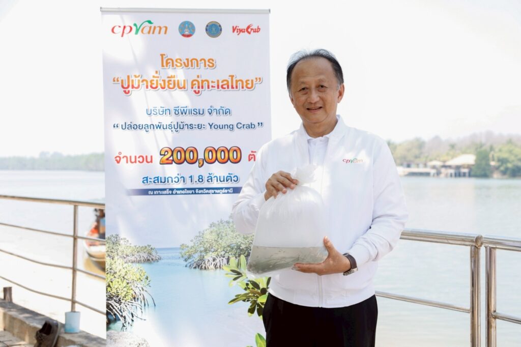 นายวิเศษ วิศิษฏ์วิญญู กรรมการผู้จัดการ บริษัท ซีพีแรม จำกัด กล่าวว่า “โครงการ “ปูม้ายั่งยืน คู่ทะเลไทย” หนึ่งในการขับเคลื่อนยุทธศาสตร์ความมั่นคงทางอาหารของซีพีแรม ดำเนินการมาอย่างต่อเนื่องเป็นปีที่ 14 เป็นการผนึกกำลังตลอดห่วงโซ่อุปทาน ตั้งแต่ต้นน้ำจวบจนปลายน้ำที่เกิดผลตามปณิธาน FOOD 3S ขององค์กร ได้แก่ Food Safety, Food Security และ Food Sustainability อีกทั้งยังเป็นการมุ่งหวังในการสร้างสมดุลระบบนิเวศบนทะเลไทย ส่งเสริมให้เกิดความมั่นคงและยั่งยืนทางอาหาร โดยปล่อยลูกพันธุ์ปูม้าในระยะ Young Crab ซึ่งเป็นระยะลูกปูม้าที่เหมาะกับการปล่อยลงสู่ทะเลที่มีโอกาสรอดสูง ในพื้นที่บริเวณเกาะเสร็จ อำเภอไชยา จังหวัดสุราษฎร์ธานี โดยดำเนินการมาตั้งแต่อดีต จวบจนปัจจุบัน รวมกว่า 1.8 ล้านตัว ซีพีแรมเป็นผู้ผลิตอาหารพร้อมรับประทาน ที่มุ่งมั่นดำเนินธุรกิจเพื่อประโยชน์ต่อสังคมไทย ด้วยหลักธรรมาภิบาล และส่งมอบอาหารที่ดีมีคุณภาพสู่ผู้บริโภค พร้อมทั้งการสร้างคุณค่า ให้กับสังคมรอบด้าน สอดคล้องกับปรัชญา 3 ประโยชน์ของเครือเจริญโภคภัณฑ์ ที่มุ่งสร้างสรรค์ประโยชน์แก่ประเทศชาติ ประชาชน และองค์กร”