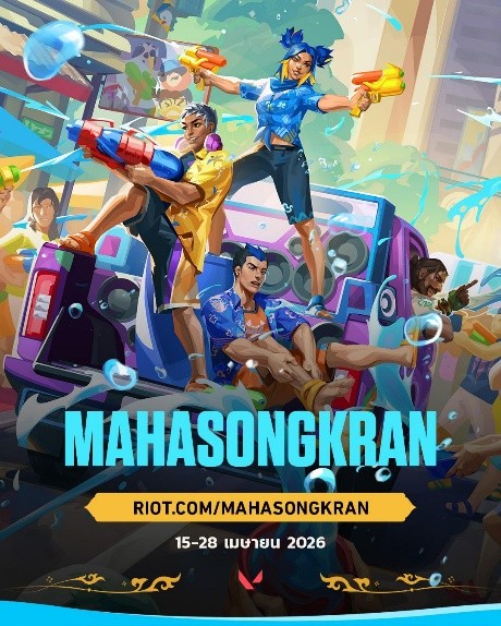 สงกรานต์ปีนี้ VALORANT จัดเต็มกว่าที่เคย! VALORANT ประเทศไทย ชวนวัยรุ่นวาโลมาร่วมฉลองปีใหม่ไทยไปด้วยกันในแคมเปญ VALORANT Maha Songkran 2026 กับอีเวนต์ออฟไลน์สุดยิ่งใหญ่แห่งปี ระหว่างวันที่ 12 – 15 เมษายน 2569 ณ สยามสแควร์ ซอย 2