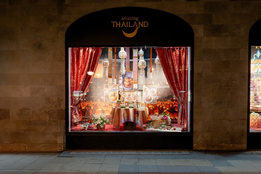 ในงาน Amazing Thailand Fest 2026 (The Wholesome Taste Of Thai) ณ ห้างสรรพสินค้าคาเดเว (KaDeWe) กรุงเบอร์ลิน หนึ่งในห้างสรรพสินค้าลักชูรี่ระดับโลกของกลุ่มเซ็นทรัล พื้นที่ทั้งหมดถูกแปลงเป็น Immersive Experience ผ่าน Brand Takeover ตั้งแต่แบนเนอร์ขนาดยักษ์บน Façade ไปจนถึง Window Display ที่ถ่ายทอดเรื่องราว “อาหารไทย 5 ภาค” เชื่อมโยงกับแหล่งท่องเที่ยว สถาปัตยกรรม และงานหัตถศิลป์ร่วมสมัย ผู้เข้าชมไม่ได้เพียง “เห็น” แต่ได้ “สัมผัส” ผ่านการแสดงศิลปวัฒนธรรม การสาธิตการปรุงอาหาร และการลิ้มลองเมนูไทยที่คัดสรรอย่างพิถีพิถัน ถ่ายทอดศักยภาพของไทยในมิติ Gastronomy และ Wellness พร้อมแปลง “รสชาติ” ให้กลายเป็น “แรงบันดาลใจในการเดินทาง” ที่กระตุ้นให้เกิดการท่องเที่ยวจริงในประเทศไทย