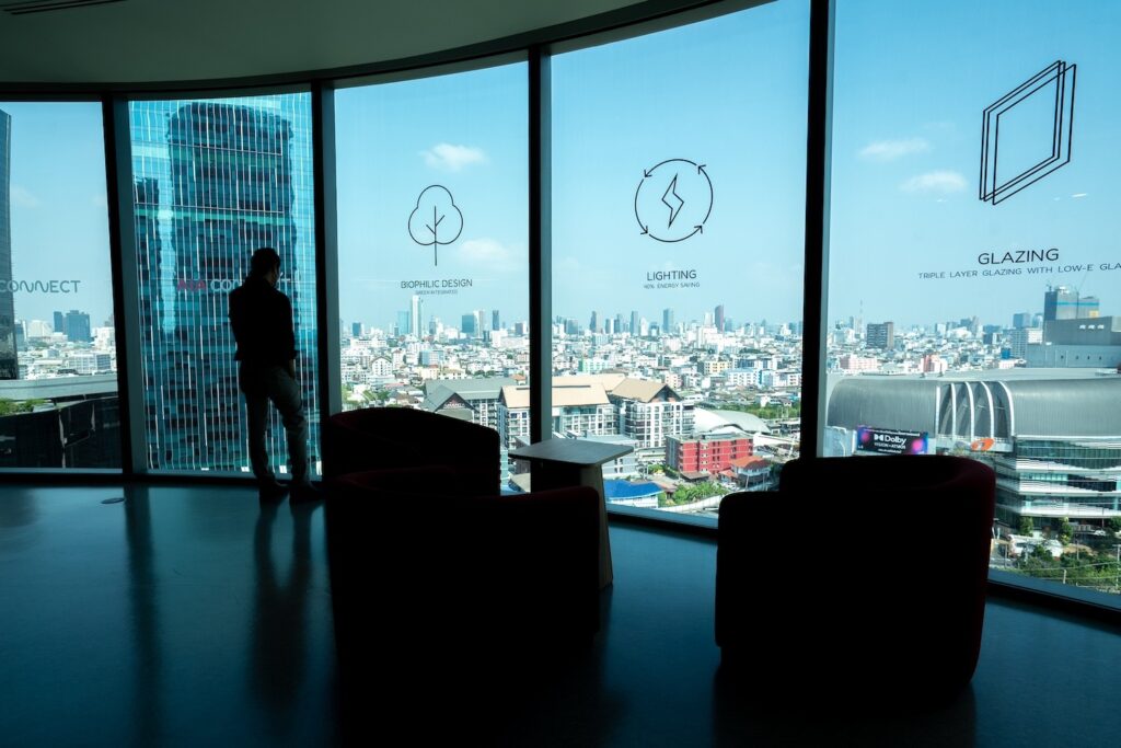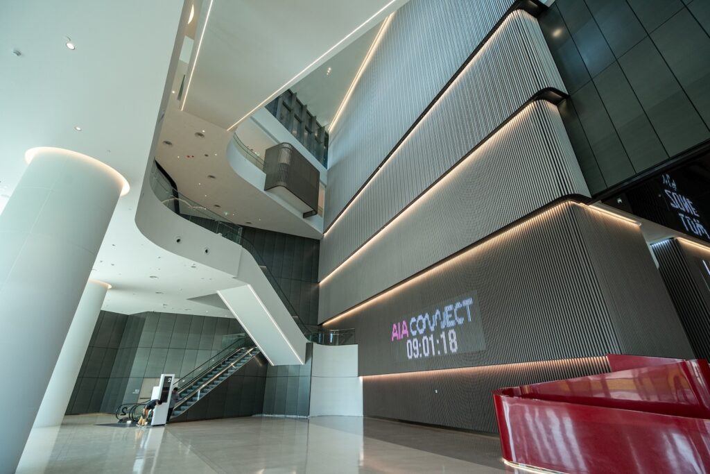 พื้นที่ภายใน AIA Connect ได้ออกแบบพื้นที่สำนักงานโดยผสานฟังก์ชันการใช้งานจริงเข้ากับฮวงจุ้ยอย่างลงตัว เริ่มตั้งแต่โถงล็อบบี้แบบ Double Volume ที่ไม่เพียงสร้างความประทับใจในความกว้างขวางและทันสมัยของอาคารตั้งแต่ก้าวแรก แต่ในทางฮวงจุ้ย บริเวณทางเข้าถือเป็นจุดรับพลัง ยิ่งเปิดกว้างและโปร่งโล่งยิ่งช่วยดึงดูดพลังงานมงคลเข้าสู่ตัวอาคารได้อย่างเต็มที่ ถัดมาคือการวางผังพื้นที่แบบไร้เสากลาง ที่ให้อิสระในการจัดสรรพื้นที่อย่างยืดหยุ่นและมีประสิทธิภาพ รองรับการปรับเปลี่ยนให้เข้ากับรูปแบบของแต่ละองค์กรได้อย่างอิสระ เสริมด้วยเพดานสูงโปร่งและหน้าต่างกระจกบานใหญ่ที่เปิดรับแสงธรรมชาติเต็มที่ ช่วยสร้างบรรยากาศการทำงานที่ผ่อนคลายและไม่อึดอัดซึ่งความโปร่งโล่งนี้จะช่วยกระตุ้นการไหลเวียนของพลังงานที่ดีและรักษาสมดุลระหว่างพื้นที่ภายในกับธรรมชาติภายนอกได้อย่างกลมกลืน
