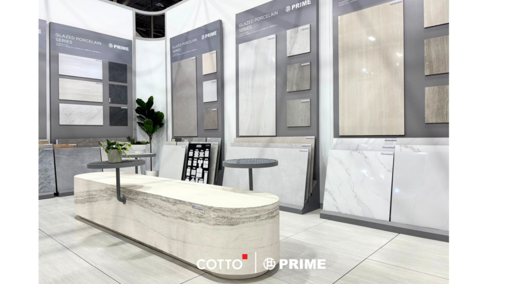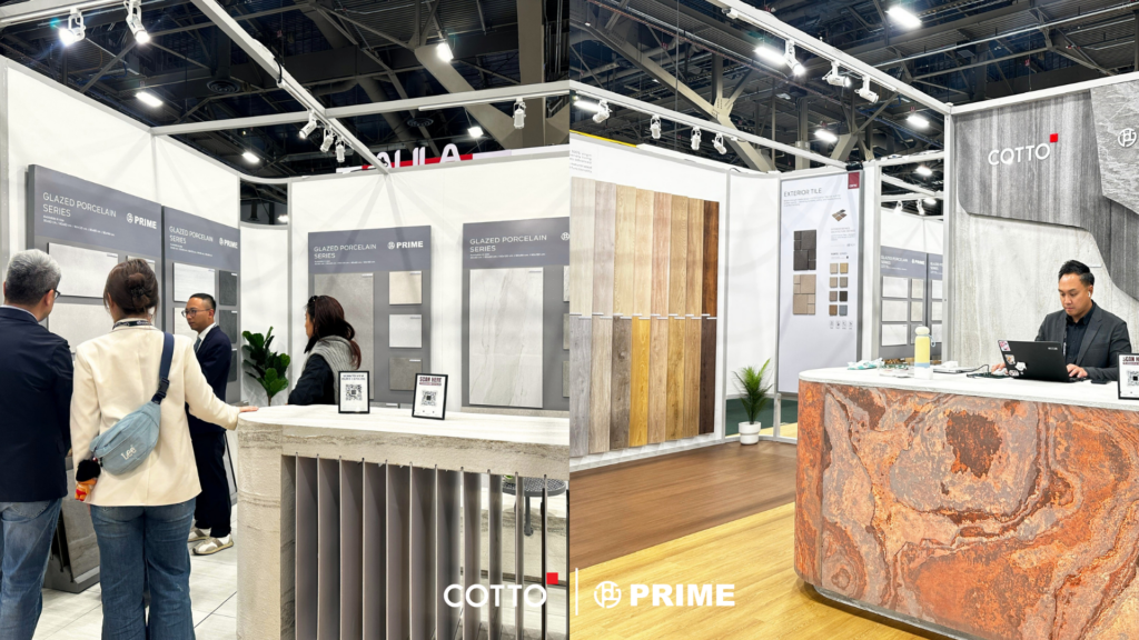 ภายในบูธ COTTO และ PRIME นำเสนอผลิตภัณฑ์กระเบื้องที่สามารถประยุกต์ใช้ได้ทั้งภายในและภายนอกอาคาร โดยหนึ่งในไฮไลต์สำคัญคือคอลเลกชัน Wood Plank ซึ่งถ่ายทอดผิวสัมผัสเสมือนไม้จริงอย่างประณีต ตอบรับไลฟ์สไตล์ของผู้บริโภคในตลาดอเมริกาที่นิยมความอบอุ่นของพื้นไม้ ควบคู่กับความทนทานต่อการใช้งาน ทั้งในด้านความชื้นและรอยขีดข่วนจากสัตว์เลี้ยง