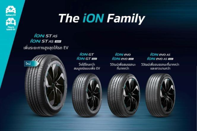 ยางรุ่น iON ST AS เป็นผลิตภัณฑ์ใหม่ล่าสุดในกลุ่มผลิตภัณฑ์ iON สำหรับรถยนต์ไฟฟ้าโดยเฉพาะ ยางรถยนต์รุ่นนี้มาพร้อมเทคโนโลยี ProDurable Compound ที่ช่วยยืดอายุการใช้งานของหน้ายาง และเทคโนโลยี Round Even ที่ช่วยให้ยางสึกหรอและกระจายแรงกดทับจากถนนอย่างสม่ำเสมอ มอบสมรรถนะการขับขี่ที่เหนือกว่า ทั้งยืดอายุการใช้งานให้ยาวขึ้น การยึดเกาะบนทุกสภาพถนน รวมถึงลดเสียงรบกวนในห้องโดยสารได้อย่างมีประสิทธิภาพ นอกจากนี้ ด้วยค่าความต้านทานการหมุนที่ต่ำและการออกแบบที่เหมาะสม ทำให้ยางรุ่นนี้เป็นตัวเลือกที่ลงตัวสำหรับผู้ขับขี่ที่ใส่ใจสิ่งแวดล้อมและตลาดรถยนต์ไฟฟ้าในประเทศไทยที่เติบโตอย่างรวดเร็วในปัจจุบัน iON ST AS ในฐานะยางรถยนต์สำหรับรถยนต์ไฟฟ้าในทุกสภาพอากาศ ยังให้การยึดเกาะ ความมั่นคง และความสบายในการขับขี่ในทุกสภาพถนน และรองรับรถยนต์ไฟฟ้ายอดนิยมหลากหลายรุ่น ไม่ว่าจะเป็น BYD Seal, BYD Dolphin, MG4 EV, Neta EV, GWM Ora 07 และรุ่นอื่น ๆ อีกมากมาย